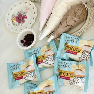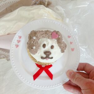新商品「生 チョコパイ<ミルクホワイト>」を使って、ホイップわんちゃん🐶作ったよ🎀