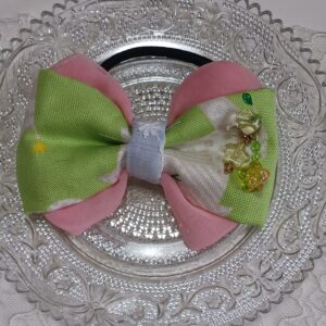 アニマル柄生地にシホンとビーズがアクセントになったヘアゴムです。