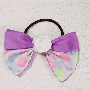 紫とフルーツカラーがお洒落なヘアゴムです。