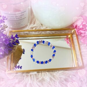 青と透明のクリスタルビーズで作られた美しいブレスレットです。