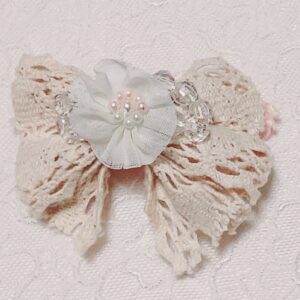 ビーズの小花とレースリボンが爽やかなイメージのヘアピンを製作しました。