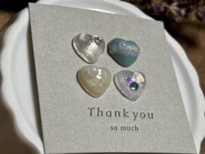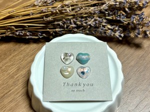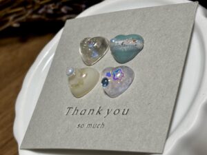 ✴︎透け感のあるアクセサリーですと、台紙上で見る色味と実際に肌につけた際の色味に違いがあります。