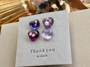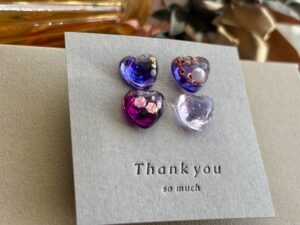 ツヤツヤキラキラのカラフルなピアスになりました。