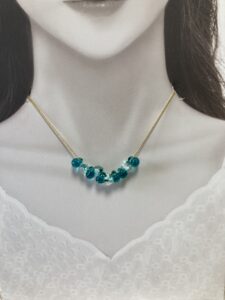 緑色と透明のビーズを使用したフラワー風デザインのネックレス。
