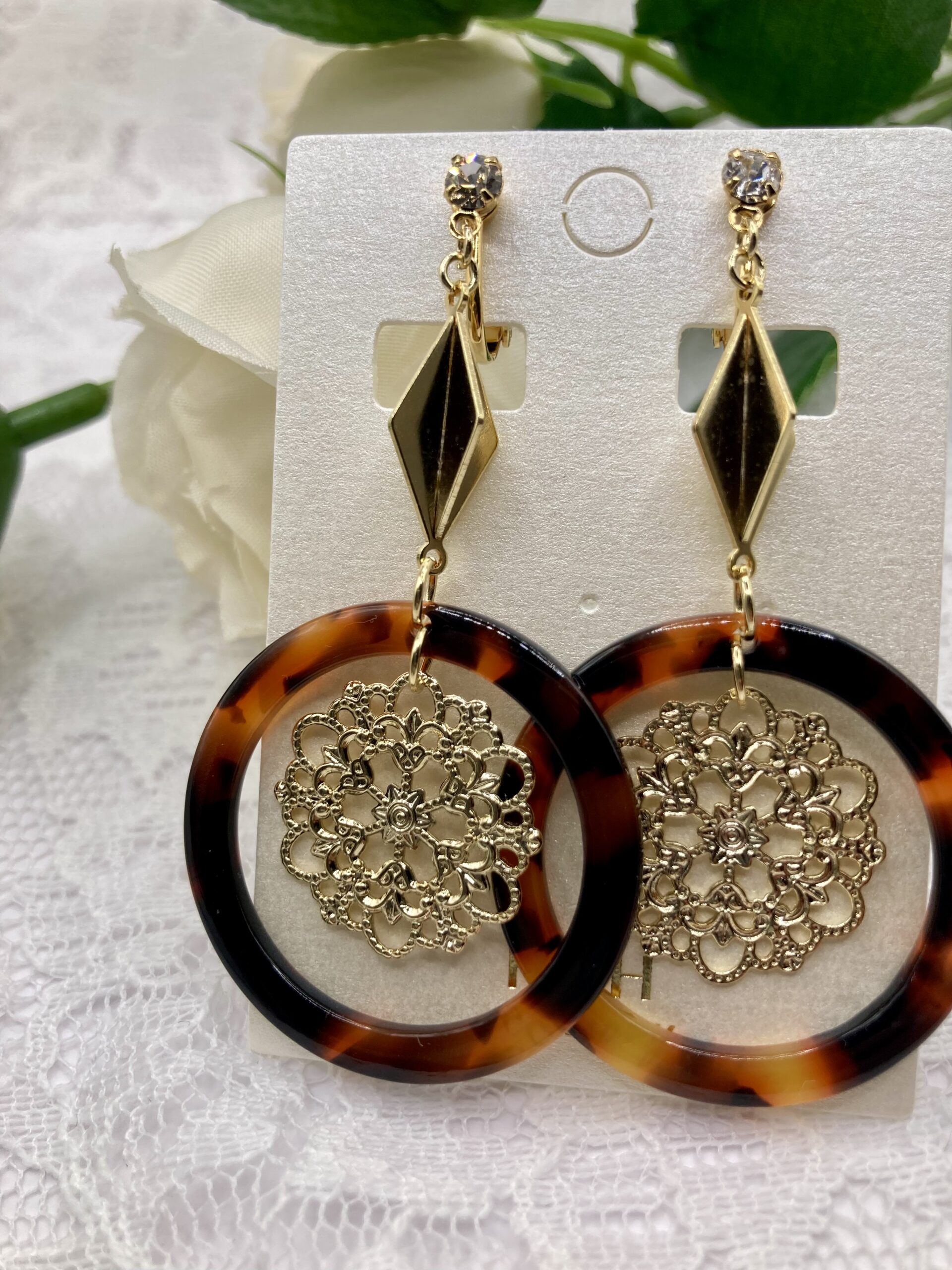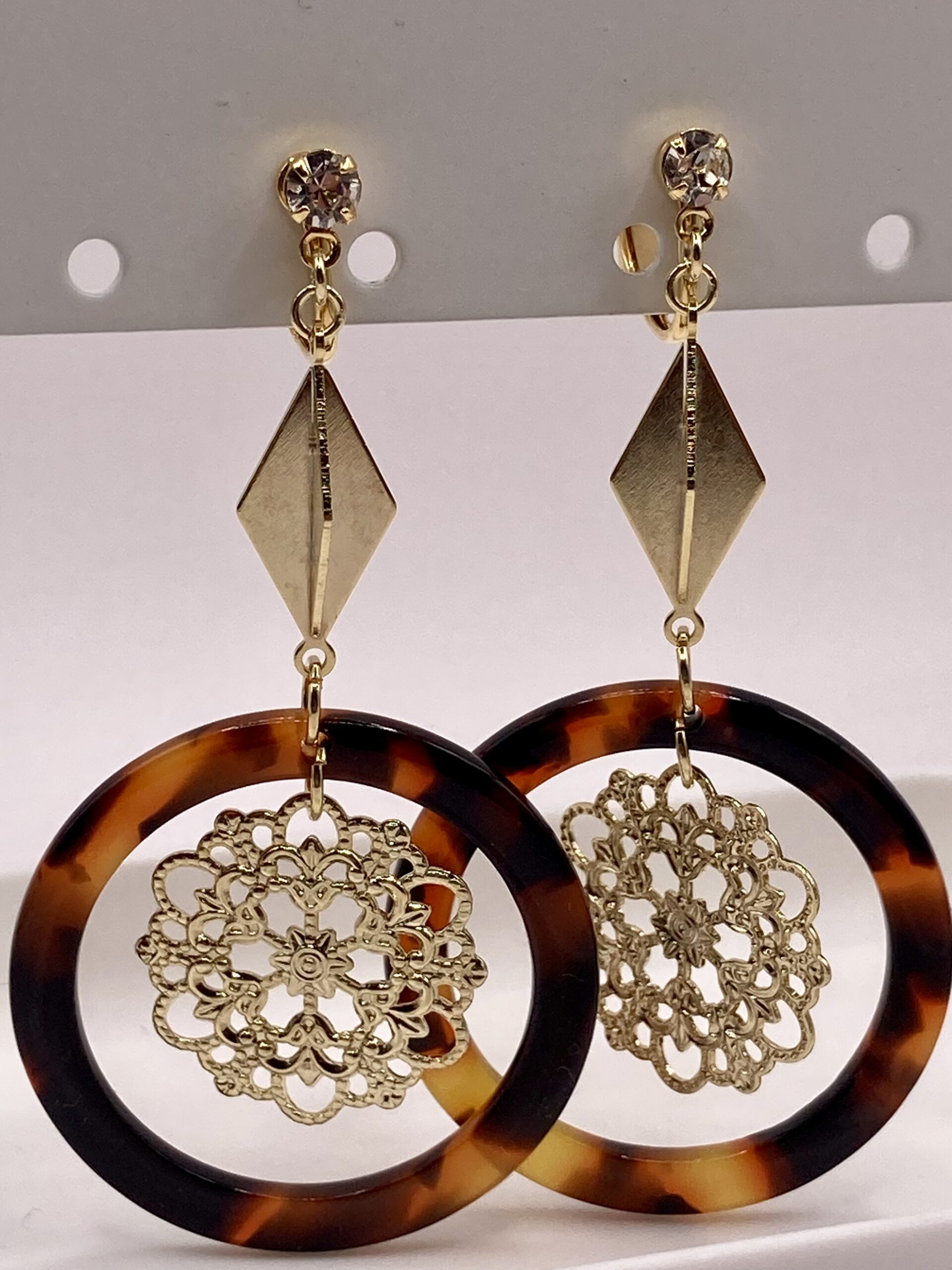 べっ甲柄のアクリルパーツとゴールドカラーで大ぶりなイヤリング出来ました(*^^*)
