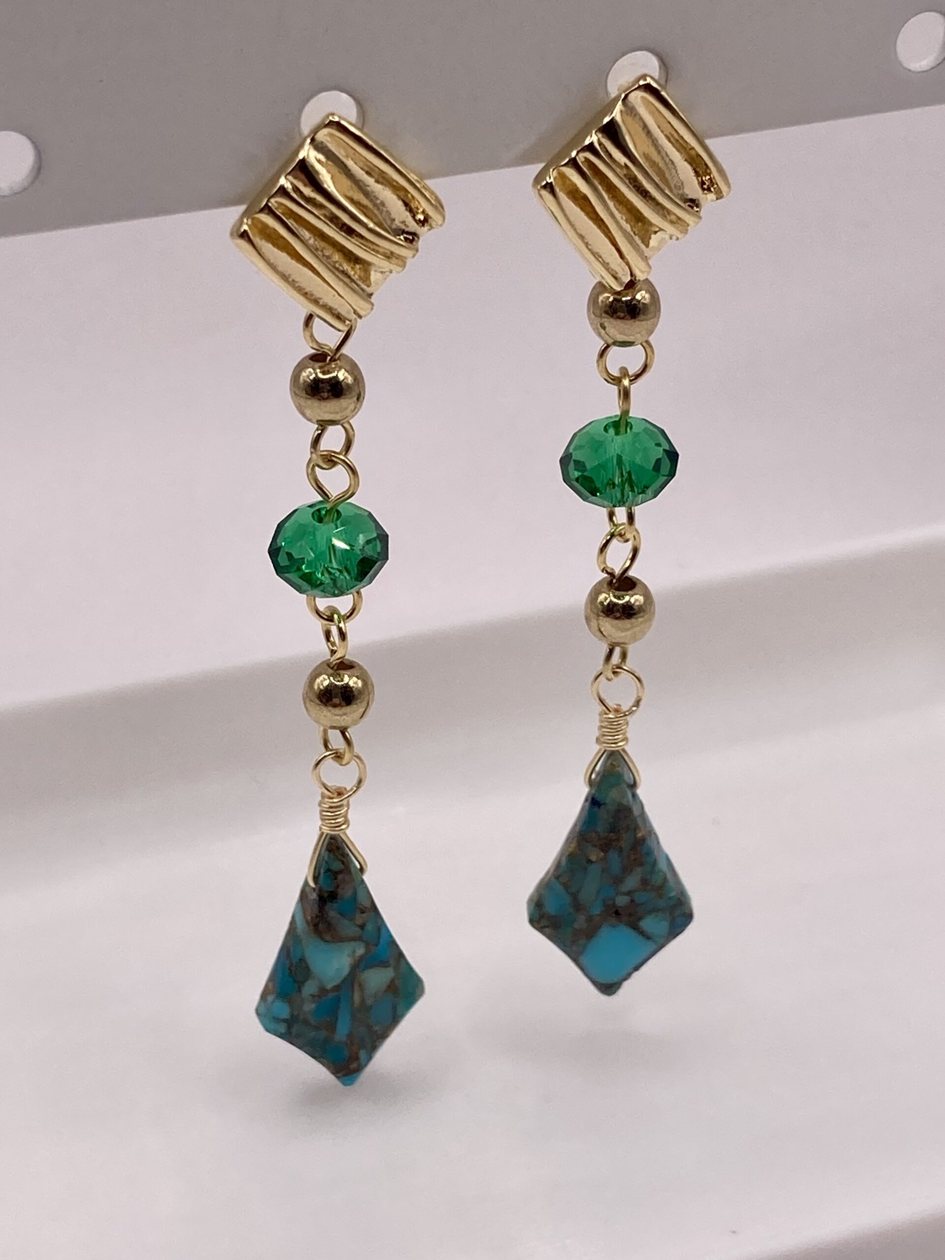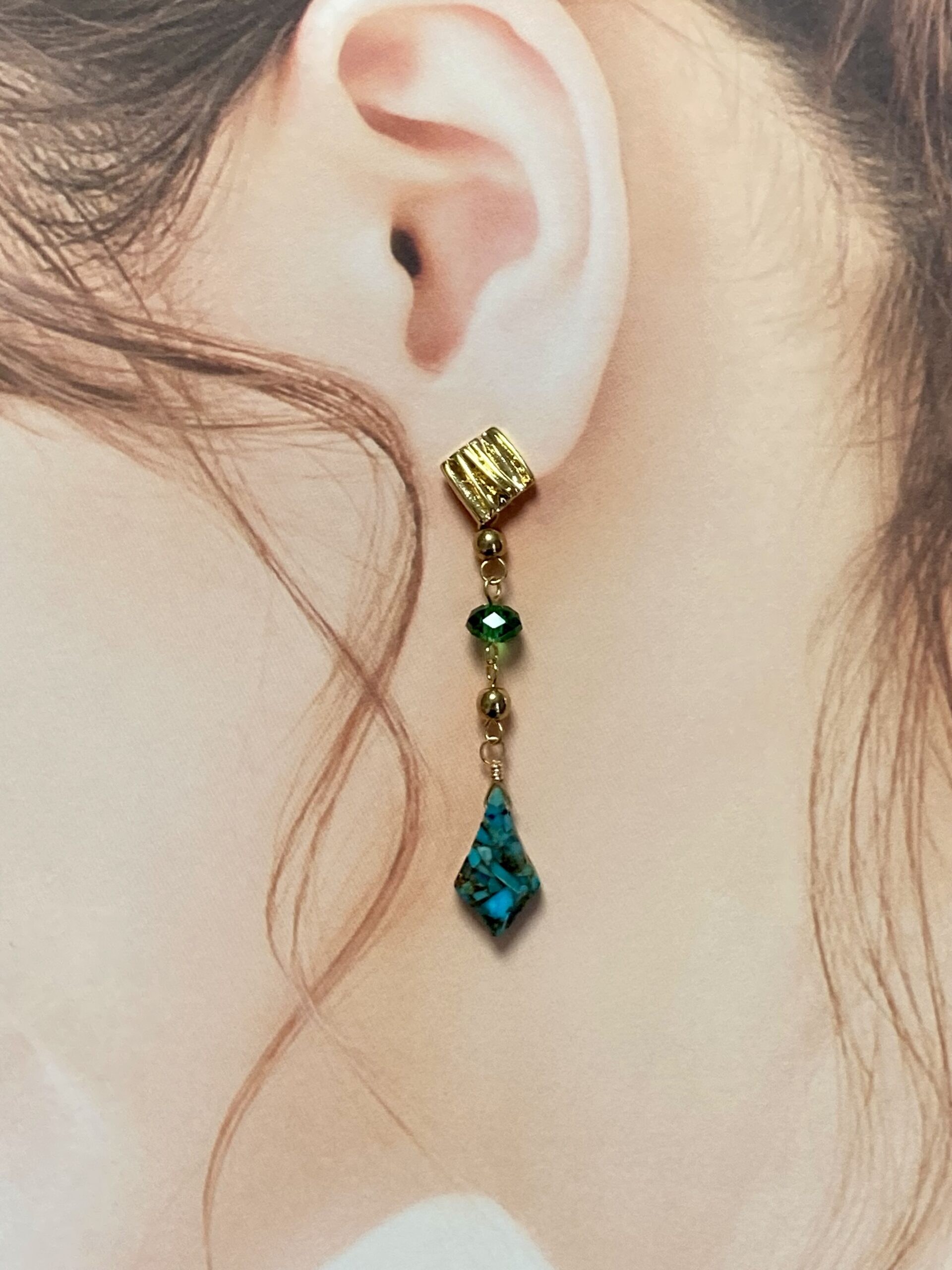 天然石〈ターコイズコッパー〉使用ロングピアス
