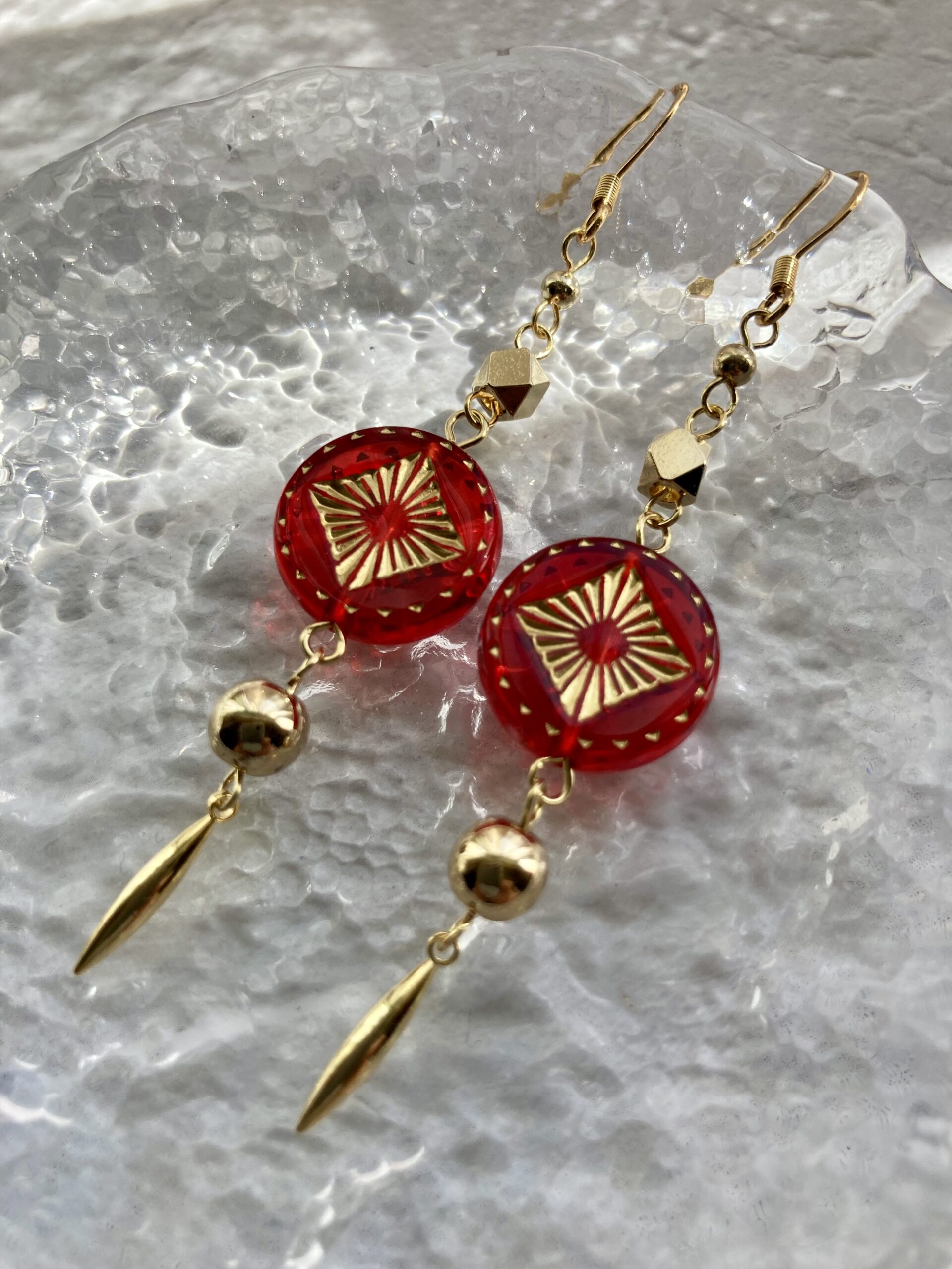 アンティークビーズを使用する事で引き締まったイメージの素敵なロングピアスですよ✨️
